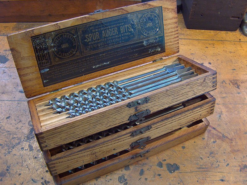Of course, getting some vintage bit braces meant I also needed some augers and screwdriver bits... that led to the acquisition of a nice, boxed set of Russell Jennings fine-thread bits, as well as a set of Irwin course-thread, solid center bits. I also picked up a variety of driver bits, countersinks, hand drills, a breast drill, spoke pointers, and on and on.