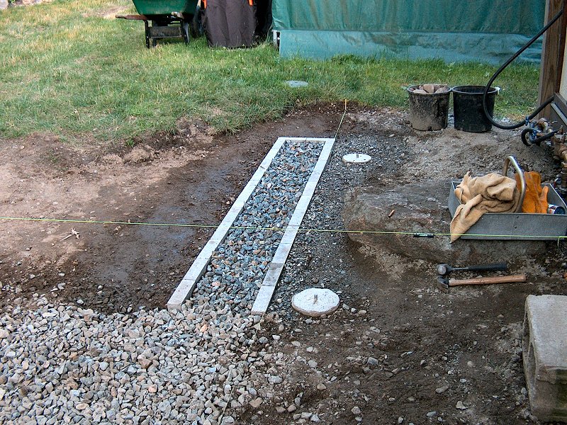 and filled with the same 3/4-inch crushed stone that's going under the entire tsukimi-dai