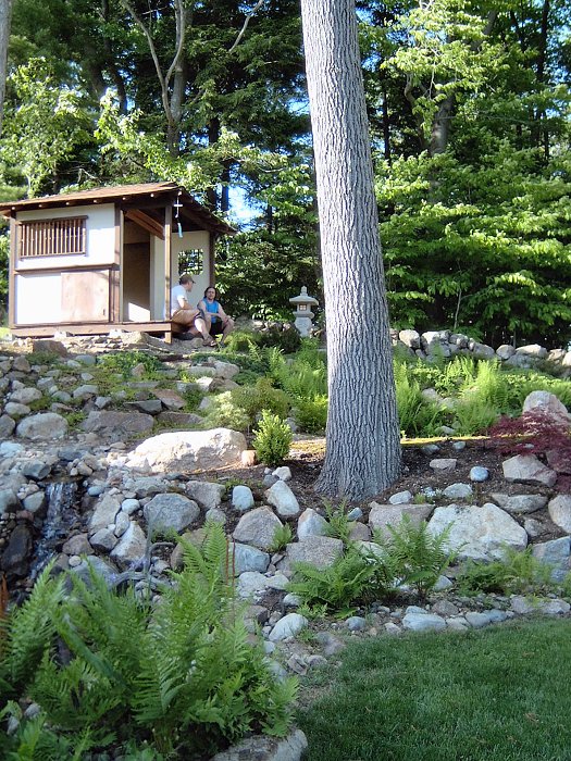 I had no idea this seemingly simple little building would lead us on the path of so many activities we both enjoy immensely. The original goal of creating a retreat where the lovely bride could escape the often depressing and always messy conditions of our home renovation project has been a great success. While we have yet to attempt preparing thick tea with the ro, we still enjoy sencha in the tea house on a regular basis. It's also wonderful place to read a book or simply sit and clear one's mind while the waterfall gurgles in the distance.