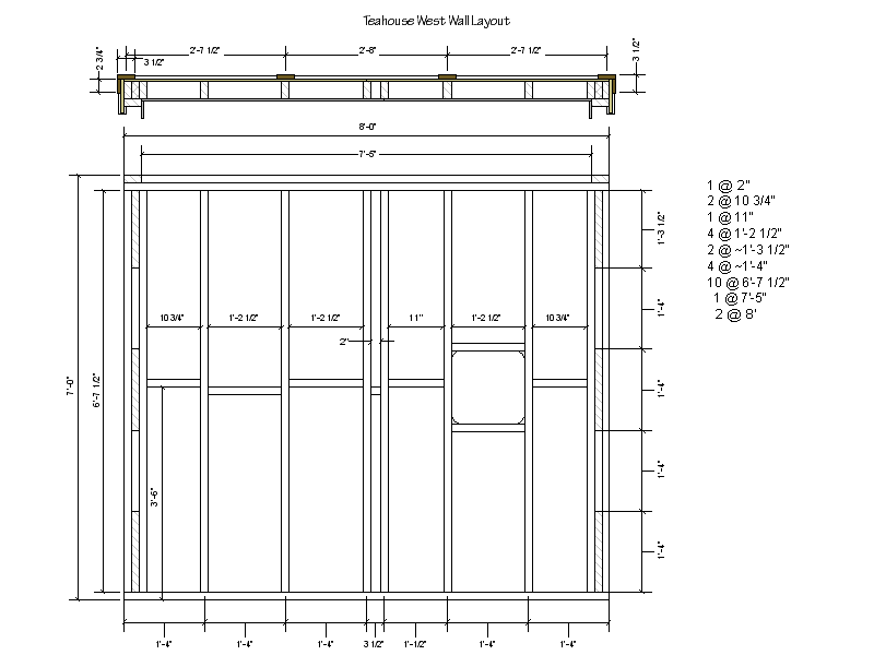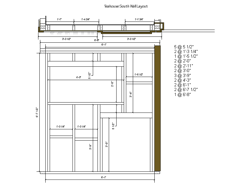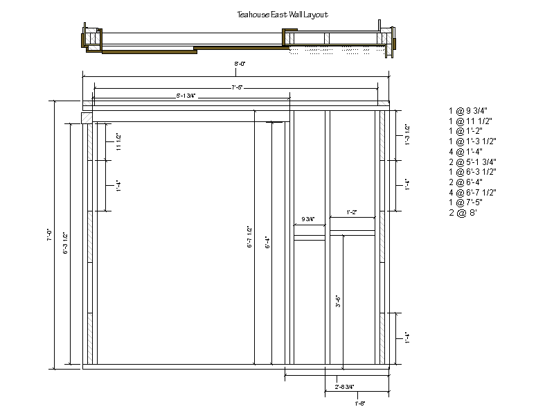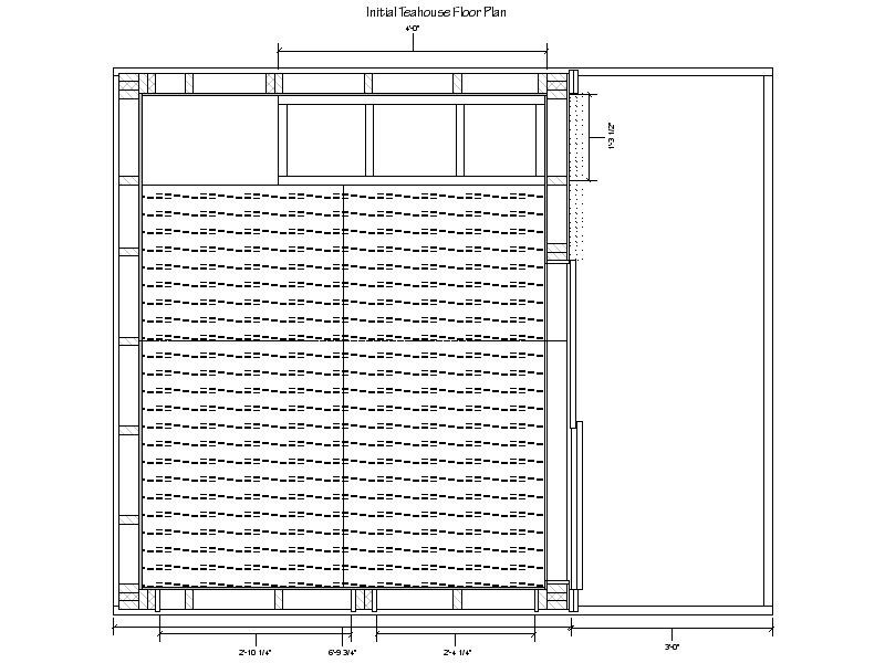 The first part of the teahouse planning was to layout the foundation and size for the building with a basic floor plan and elevations.