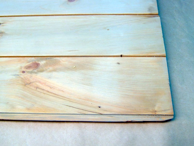 After many hours of perusing web sites and books for bathroom design ideas, we've settled on the materials we're going to use for wall finishes in the bathroom. One of the biggest struggles has been deciding on whether or not to tile all the walls, since it's really the ideal wall finish for a bathroom in my opinion. As much as we like the look of natural stone tile, we decided that covering all the walls of our tiny little bathroom with Slate would make the room appear too much like a little stone cave - it's just so small to begin with that we didn't want to "shrink" it even more with dark walls. Keeping our pseudo interior design "rules" in mind, we decided to apply the "standard" faux stucco finish to the exterior wall with the window, and the grass-paper wallpaper will go on the wall behind the sink with the medicine cabinet and lights. According to our "rules", the rest of the walls in the room should also get the grass paper, but we're a little concerned about water splashing over the top of the shower so we're instead going to apply horizontal tongue & groove knotty pine panelling with semi-transparent Cedar Naturaltone (Olympic #716) stain. The light-colored wood should help brighten and open the room a bit, and will provide a relatively waterproof wall covering with a few coats of satin polyurethane topcoat. We're also planning to install the same wood panelling on most of the ceiling (the shower ceiling will be DensArmor Plus® GWB, which I discuss at length in the kitchen section).