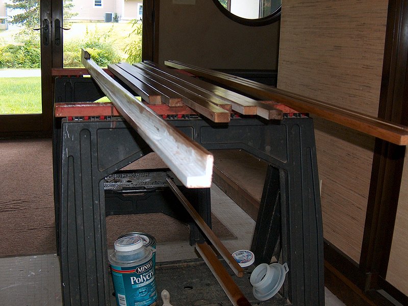 was done and the tile baseboard installed to determine vertical trim length. With the tile finally finished, I could do some